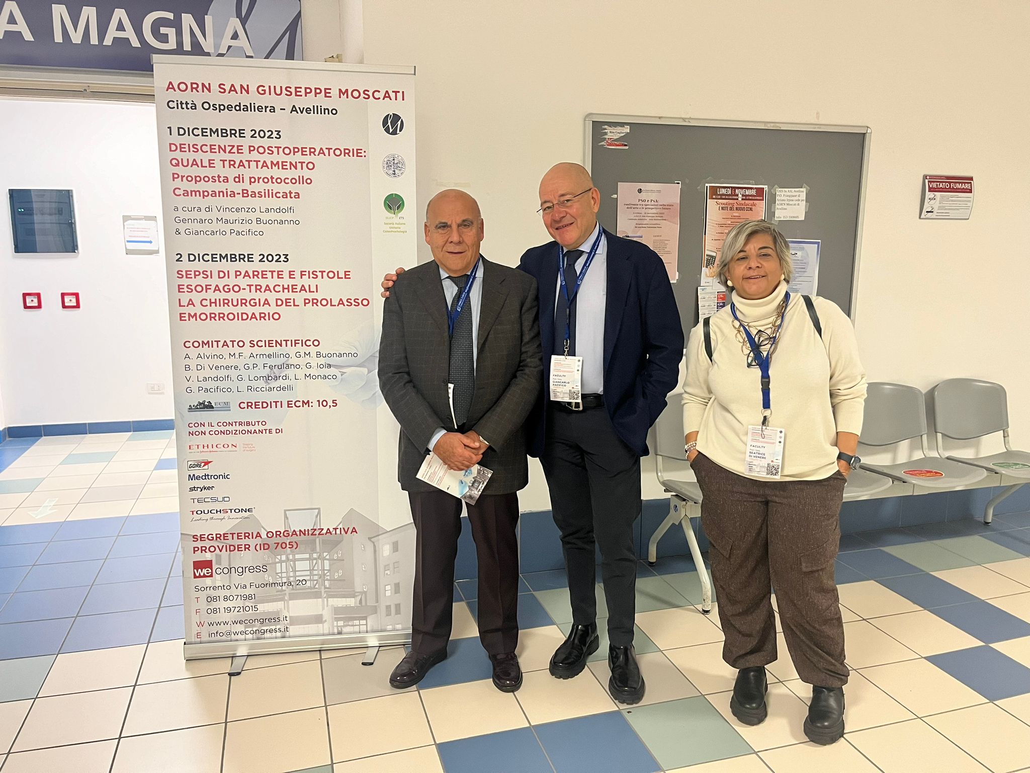 Hanno contribuito attivamente anche due medici dell’ospedale Madonna delle Grazie di Matera alla stesura di un nuovo protocollo per il trattamento delle complicanze che possono verificarsi dopo interventi chirurgici. La proposta è stata presentata qualche giorno fa, nell’aula magna della Città ospedaliera dell’AORN San Giuseppe Moscati di Avellino, da Giancarlo Pacifico, Direttore della UOC di Chirurgia Generale dell’ASM di Matera e da Beatrice Di Venere, Dirigente Medico della UOC di Chirurgia Generale della stessa azienda, nel corso di un convegno che ha coinvolto specialisti chirurghi di riconosciuta fama provenienti da tutta Italia.