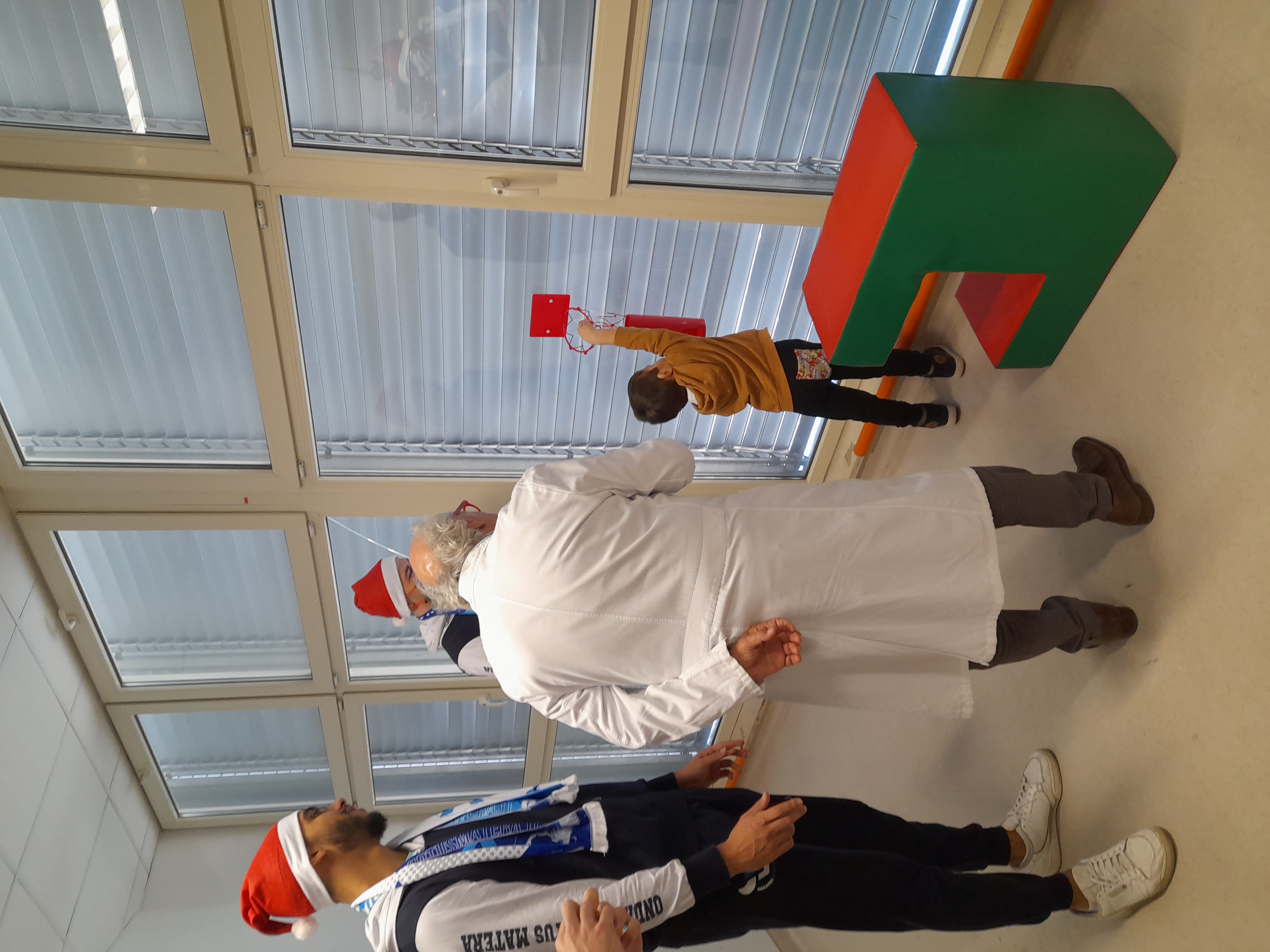 La delegazione, accolta dalla gentilezza di tutto il personale sanitario presente, dal Direttore Sanitario dell’Ospedale, dott. Gaetano Annese e dalla dott.ssa Giovanna Tritto, ha trascorso un’ora con i piccoli ospiti del reparto per augurare loro un Buon Natale, lasciargli in dono qualche gadget e fare qualche canestro insieme.
