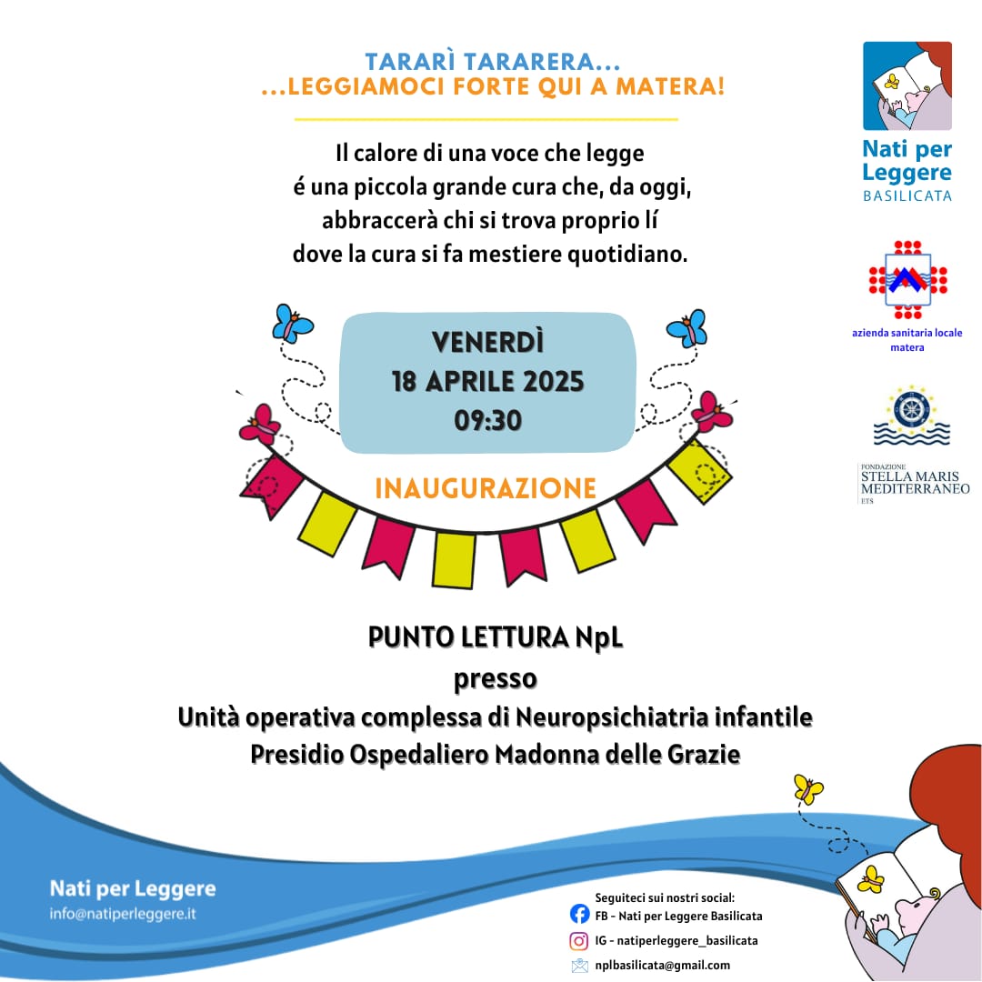 “Investire nella lettura precoce significa investire nel futuro dei nostri bambini, soprattutto di quelli più fragili. Con questo progetto, la sanità si fa anche cultura, prossimità e cura dell’anima. Un grazie sincero ai volontari e agli operatori del settore che, con passione e competenza, rendono possibile tutto questo”, ha dichiarato l’Assessore alla Salute e Politiche della Persona Cosimo Latronico.